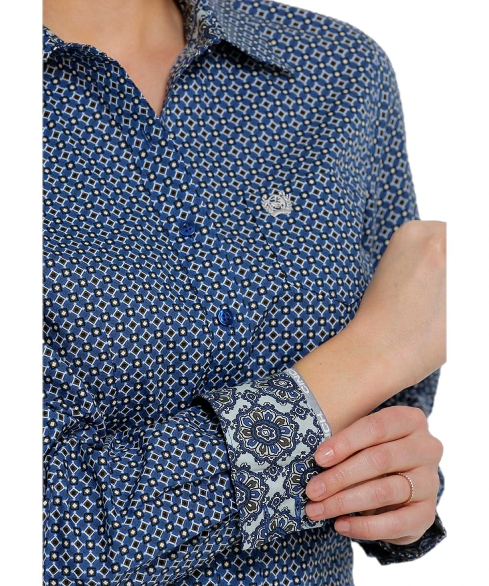 100% Cotton; Long Sleeve; Spread Collar; Open Left Chest Pocket With Logo Embroidery; Button Down Placket; Blue Buttons; Contrast Interior Trim On Collar And Cuffs; Button Cuffs; Geometric Print; Color: Royal Blue; Style #MSW9164192
