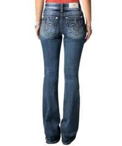 98% Cotton/2% Spandex, 11 Oz. Stretch Denim; Light Stonewash; Slim Fit; Moderate Rise; Tinting; Sanding; Whiskers; Chevrons; Khaki Stitching Accent; Trouser Leg; Style #MJ81454083
