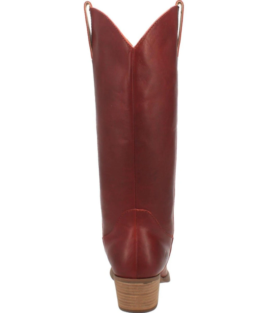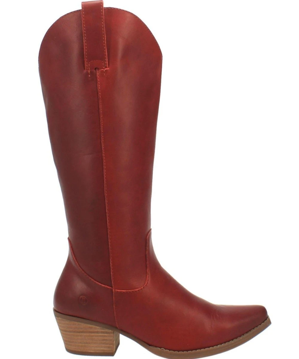14″ Boot; Soft Burnished Leather; Fashion Snip Toe; Hinged Cushion Insole; Unit Heel; Rubber Outsole; Style #DI 257 RED