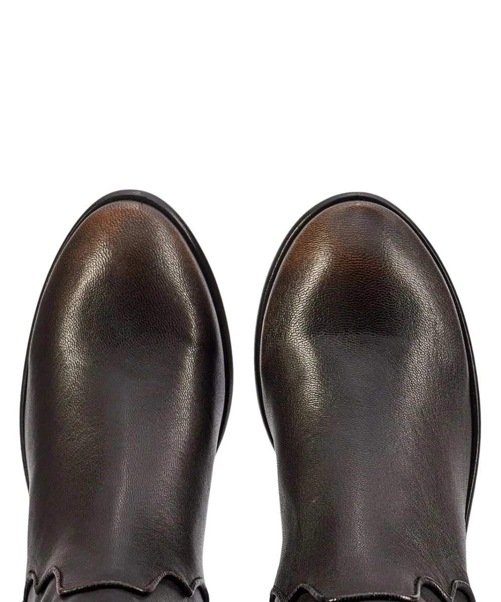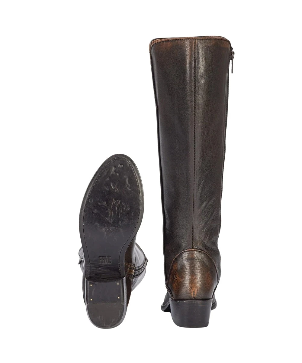 15″ Shaft; Antiqued Pull Up Leather; Western Style Piping Detail; 1 3/4″ Heel; Round Fashion Toe; Leather Outsole; Color: Distressed Black; Style #FR40093-BLAC