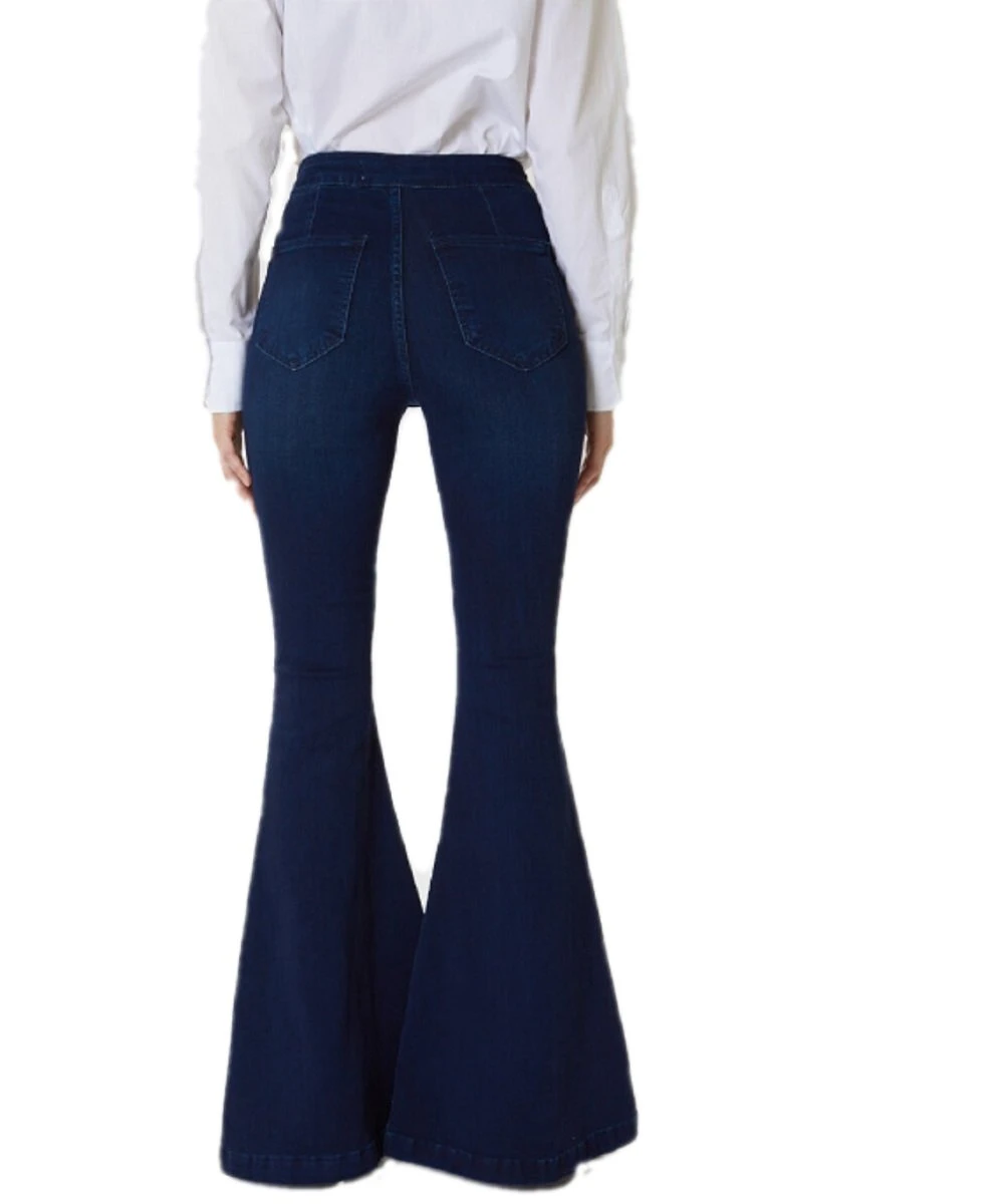 54% Cotton/34% Rayon/10% Polyester/2% Spandex; Super High Rise; Whiskers; Flared Legs; 10 1/2″ Rise; 34″ Inseam; Style #KC6247ND