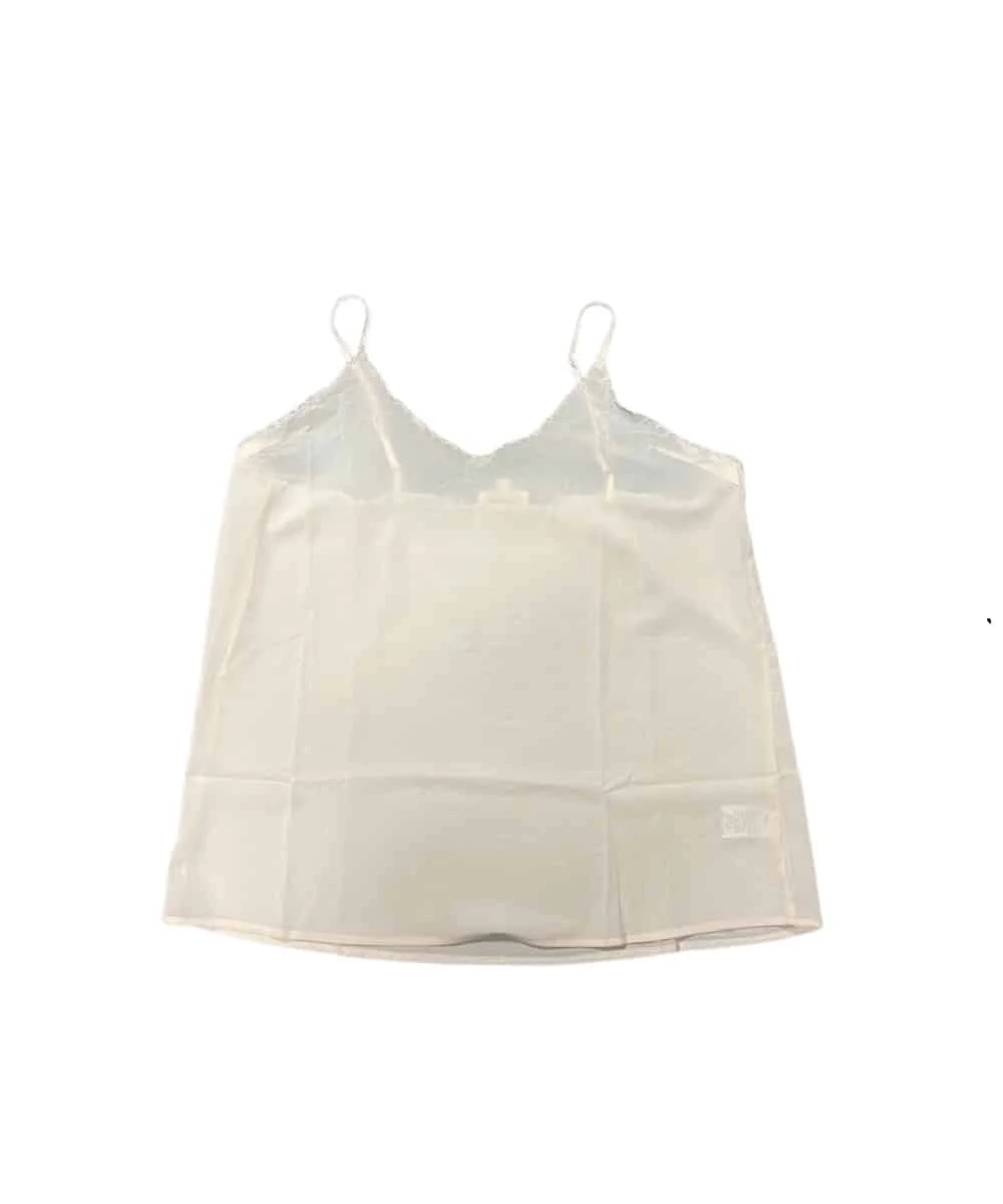 100% Polyester; Color: Cream; Scalloped Tank; Adjustable Spaghetti Straps; Scoop V-Neck; Flowy Fit; Color: Cream; Style #C5600