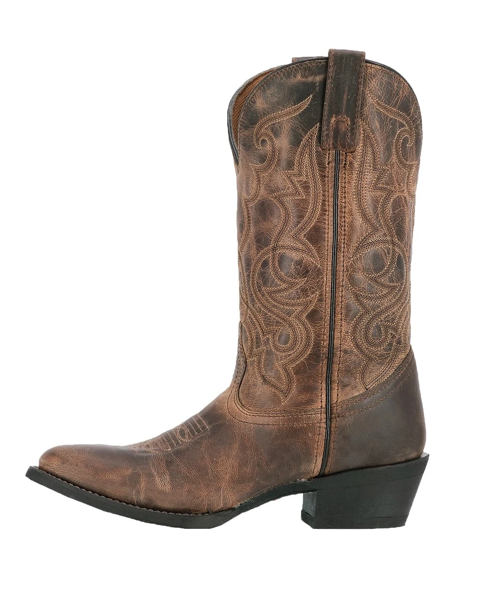 11″ Boot; Leather; Elegant Stitching Accent; Removable Orthotic; 1 3/4″ Medium Cowboy Heel; Round Toe; Flight Rubber Outsole; Style #51112