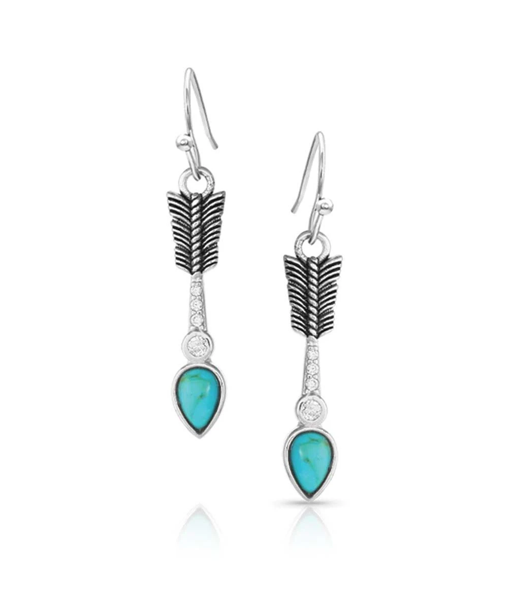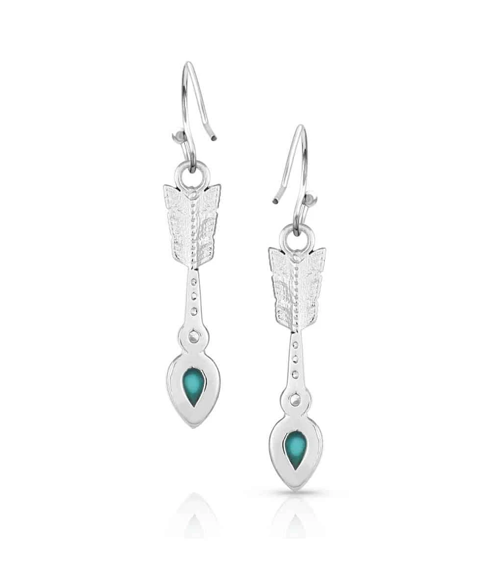 Rhodium Over Sterling Silver; Cubic Zirconia; Tear Drop Shaped Turquoise Stone From A Detailed Arrow Accented With Sparkling Clear Crystals; Hypoallergenic French Wire Hook; Style #KTER5482
