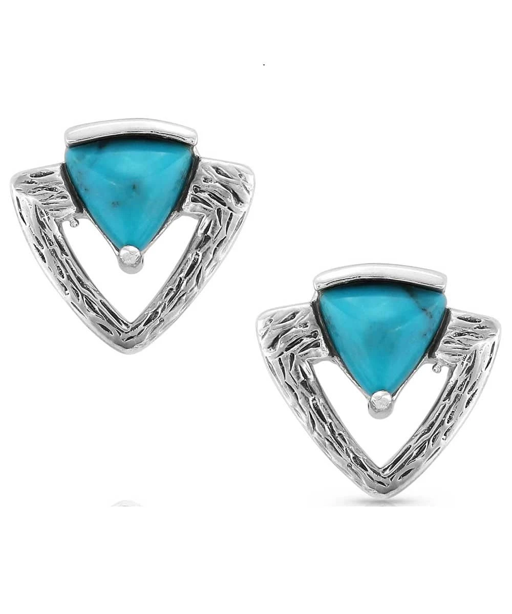 Sterling Silver Triangle Post Earrings; Silver Textured Triangle; Simple Triangle Shaped Turquoise Stone At Top; Post Earrings Attach By A Hypoallergenic Stainless Steel Post-Post Back Wire; Rhodium Plate Over Solid Sterling Silver; Turquoise; Style #KTER5388