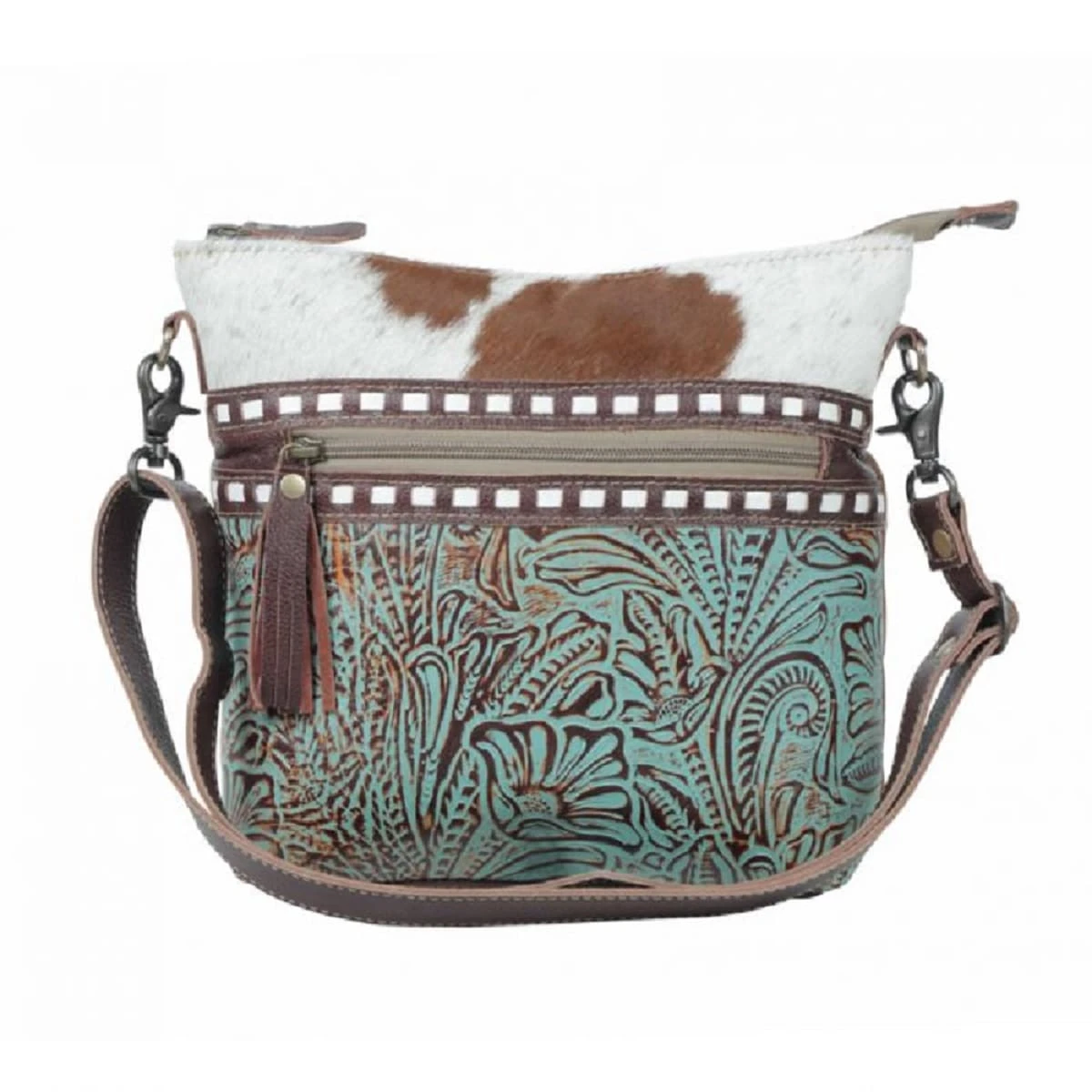 Canvas, Leather, And Hairon; Front Tasseled Zipper Pocket; Adjustable Strap; Cross-Body Bag; Top Zipper Opening; Measures Approximately: 12 x 2.5 x 11; Style #S-5218