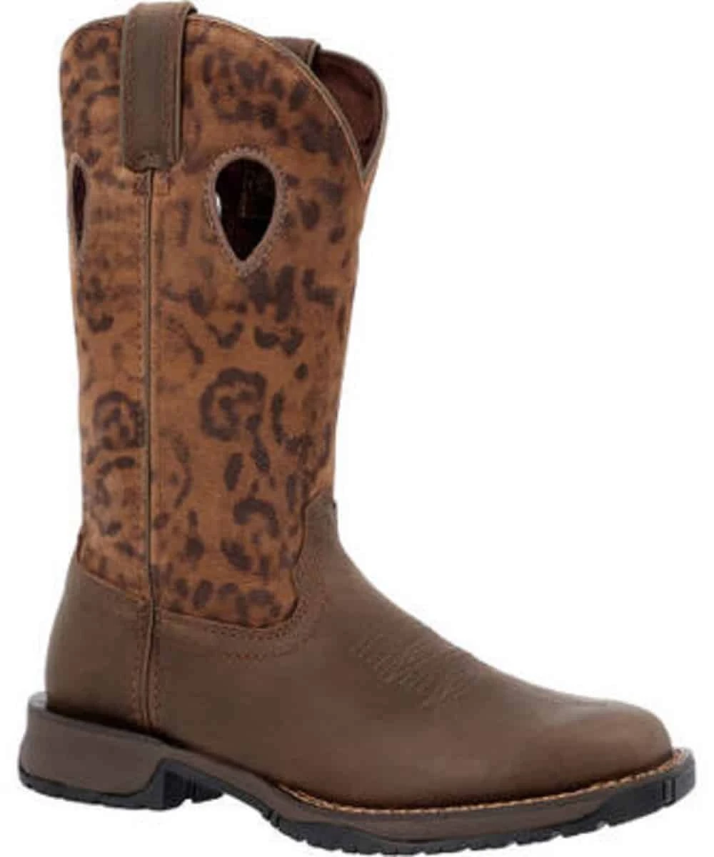 Full Grain Leather; Color: Dark Brown With Leopard Upper; Pull On Leather Loops; 12″ Upper; Expansion Fit Seam For Easy On And Off; Fiberglass Shank; EnergyBed Footbed Featuring Memory Foam; Square Toe; Soft Toe Work Footwear; EVA Midsole; Meets ASTM F2892 Electrical Hazard Standard; Oil And Slip Resisting Rubber Outsole; Light And Flexible Construction; 1 1/2″ Heel; 14″ Calf Circumference; Style #RKW0404