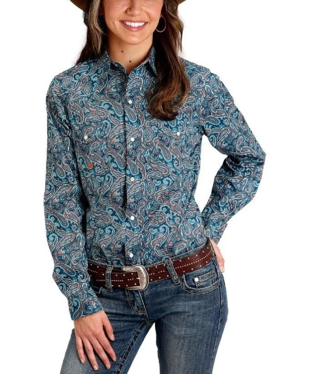 100% Cotton; Long Sleeve; Spread Collar; Snap Front And Cuffs; Two Snap Flap Chest Pockets With Logo Embroidery; Single Point Front And Back Yokes; Front And Back Darting; Multi Color Paisley Print; Color: Blue; Style #03-050-0225-6005