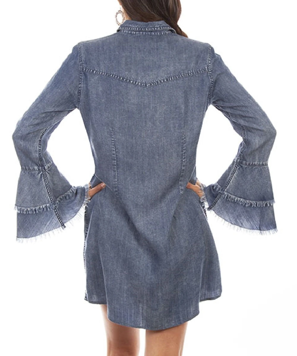 100% Cotton; Point Collar; Snap Front; Two Snap Flap Pockets; Double Ruffled Bell Cuffs With Raw Edge; Single Point Front/Back Yokes; Style #HC619
