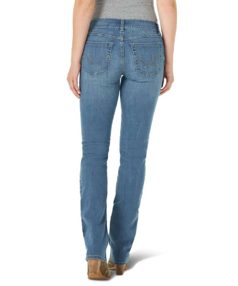 98% Cotton/2% Spandex; Light Wash; Whiskering; Five Pocket Style; Hip Pockets With Embroidery; Mid Rise; Flatters Curves; Contour Waist; Style #09MWTGB